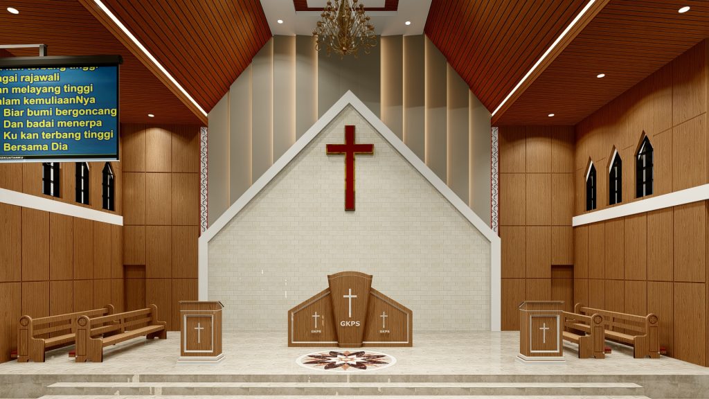 Layanan desain gereja minimalis skala kecil tetap menghadirkan suasana sakral. Ruang terasa lapang meski dengan ukuran terbatas. Desain minimalis membantu efisiensi biaya.