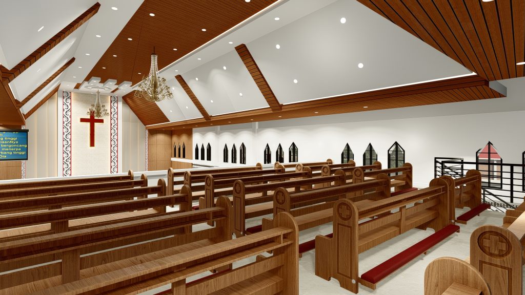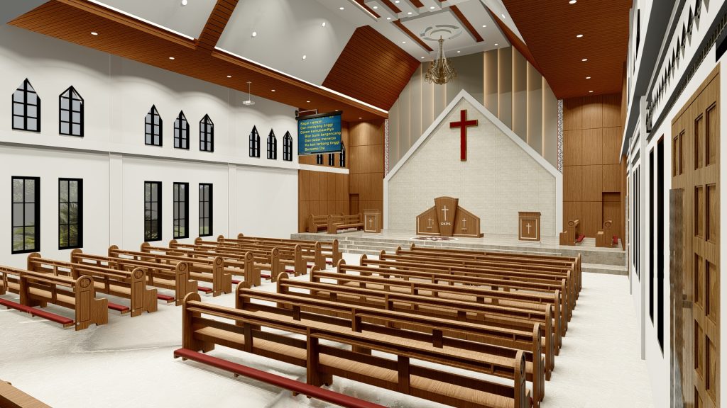 Layanan desain gereja minimalis sangat sesuai untuk gereja berukuran kecil. Tata ruang dirancang efisien tanpa mengurangi kenyamanan. Layanan desain gereja minimalis memaksimalkan penggunaan ruang.